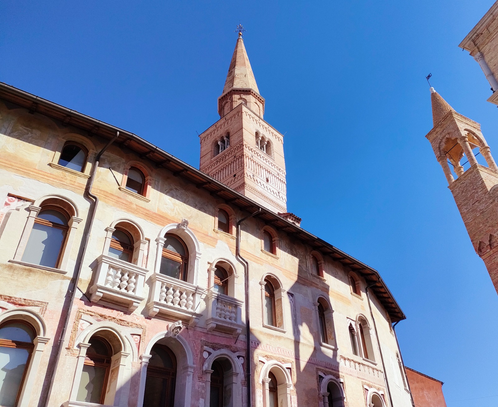Il Museo d'arte e il Campanile nell'azzurro del cielo primaverile Foto di Elisa Pellin (25/03/2024)