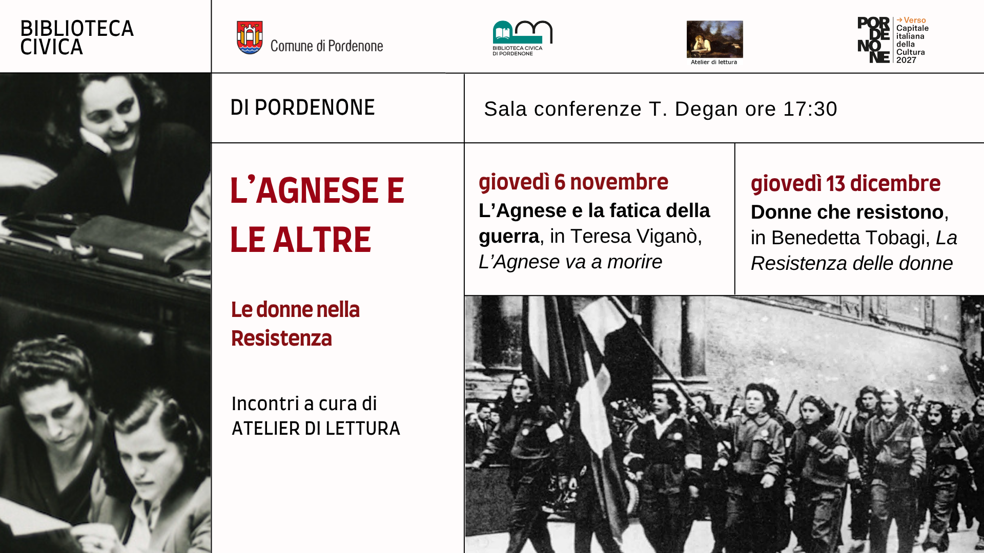 Nell’anniversario degli ottant'anni dalla Liberazione, l’Atelier di lettura propone due incontri per riflettere sul ruolo delle donne nella Resistenza italiana attraverso la lettura di romanzi, testimonianze, memorie, biografie scritte dalle donne subito dopo il 1945 e negli anni seguenti.