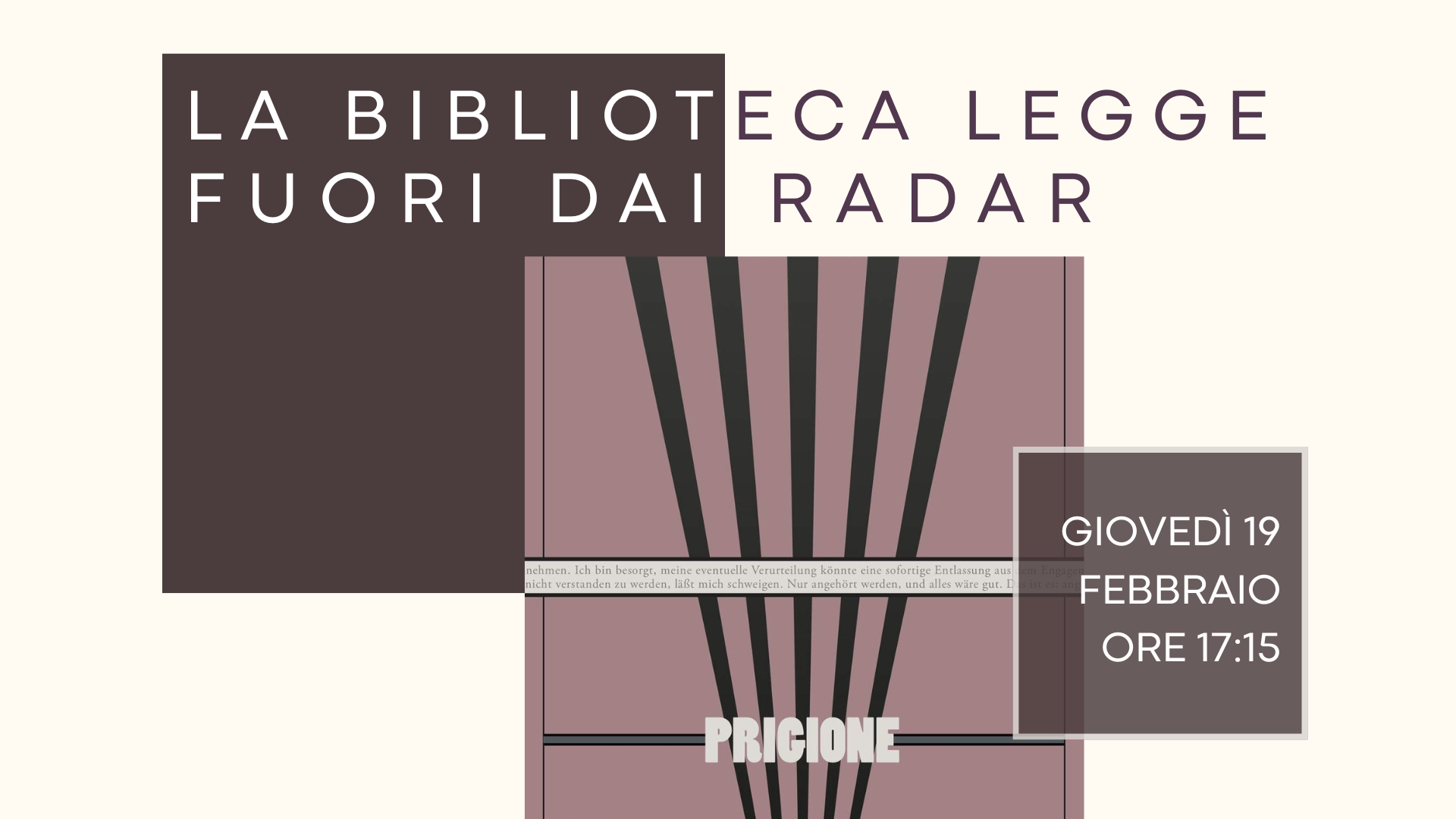 Il Gruppo di lettura “La biblioteca legge fuori dai radar” si riunisce ogni terzo giovedì del mese alle ore 17:15.
