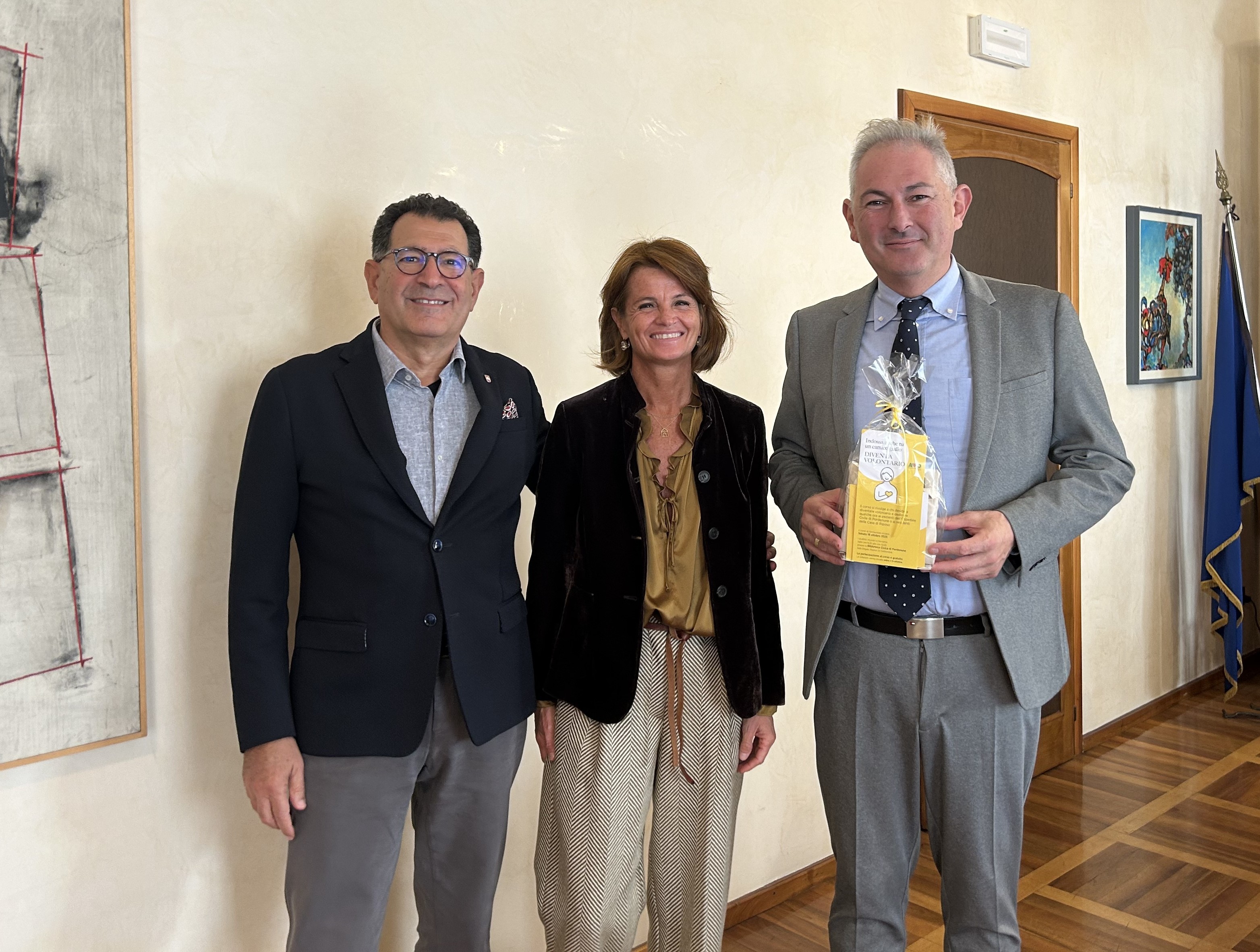 Il Sindaco di Pordenone, Alessandro Basso, e l’Assessore Pietro Tropeano, hanno incontrato oggi la Presidente dell’AVO (Associazione Volontari Ospedalieri) Piera Gava, l’associazione che opera con dedizione negli ospedali e nelle case di riposo, affiancando non solo i pazienti ma anche i loro familiari, offrendo supporto, ascolto e compagnia.